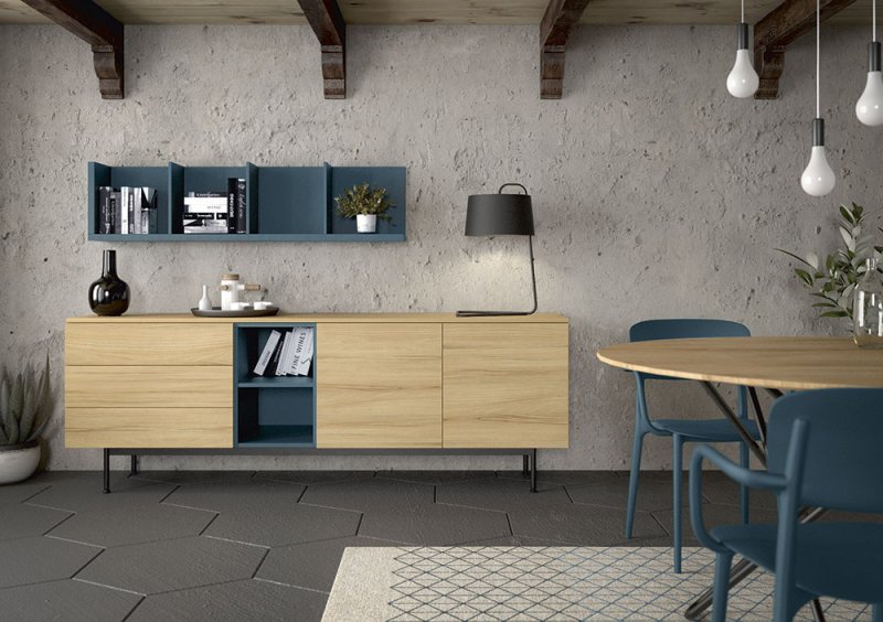 In primo piano c’è appunto Emperador, nuova ceramica effetto marmo,  tendenza del momento della linea Connubia dedicata a tavoli e sedie, e Manhattan, linea di soggiorni completamente personalizzabile secondo i gusti del cliente: ben quaranta le possibili combinazioni di madie, basi a terra, pensili, mensole e panche.